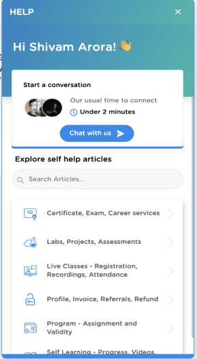 Learner is made aware of the Project Mentoring Session