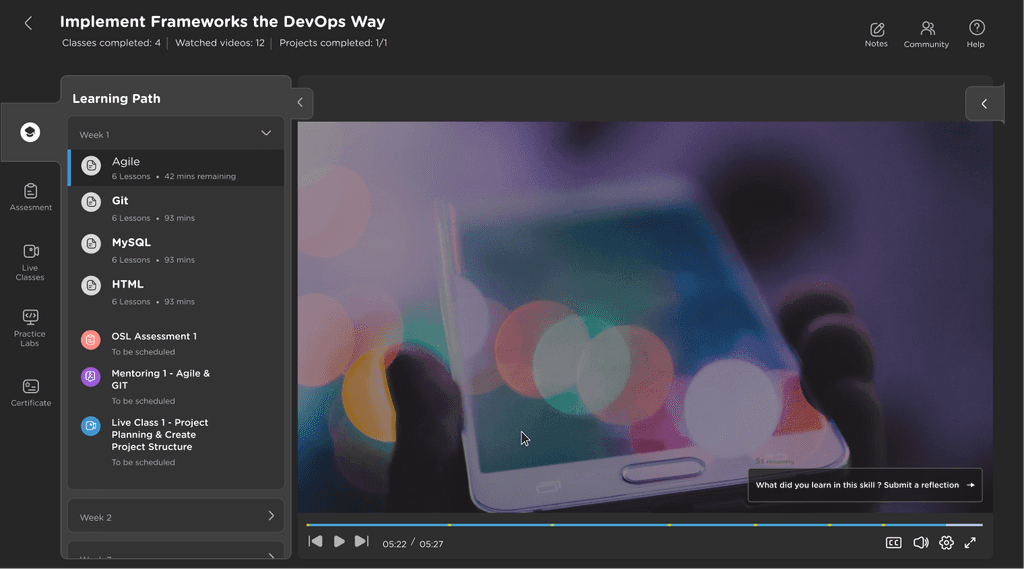 While the Learners are watching the OSL videos, they will also have the ability to connect with peers jut below that OSL. We can have the space for collaboration & discussions on every OSL. Which will be connected to the community.