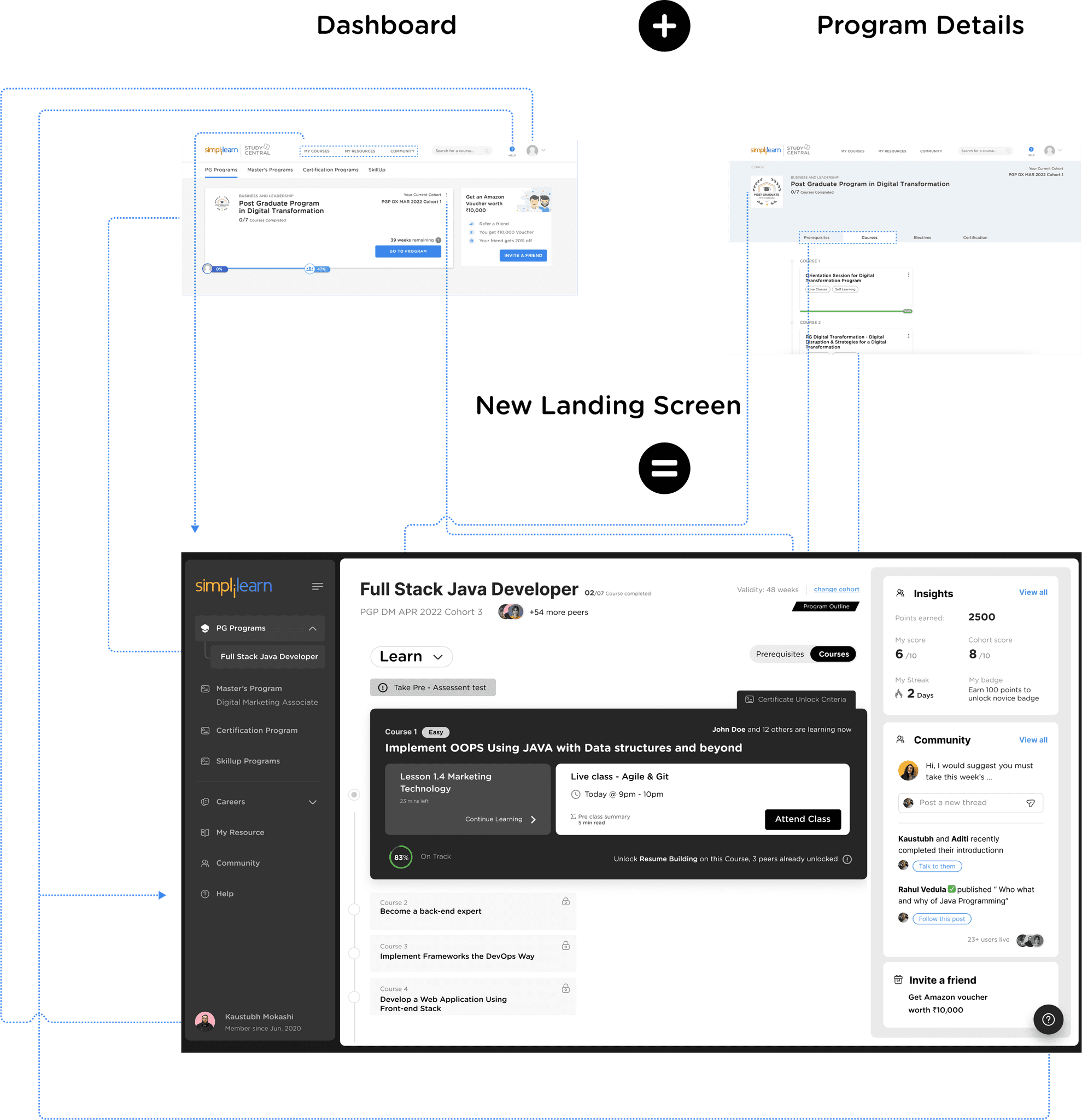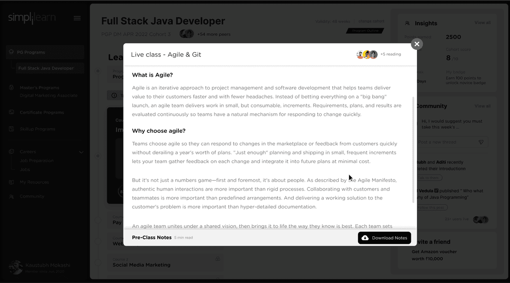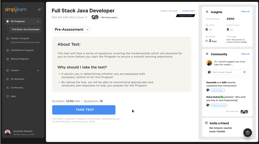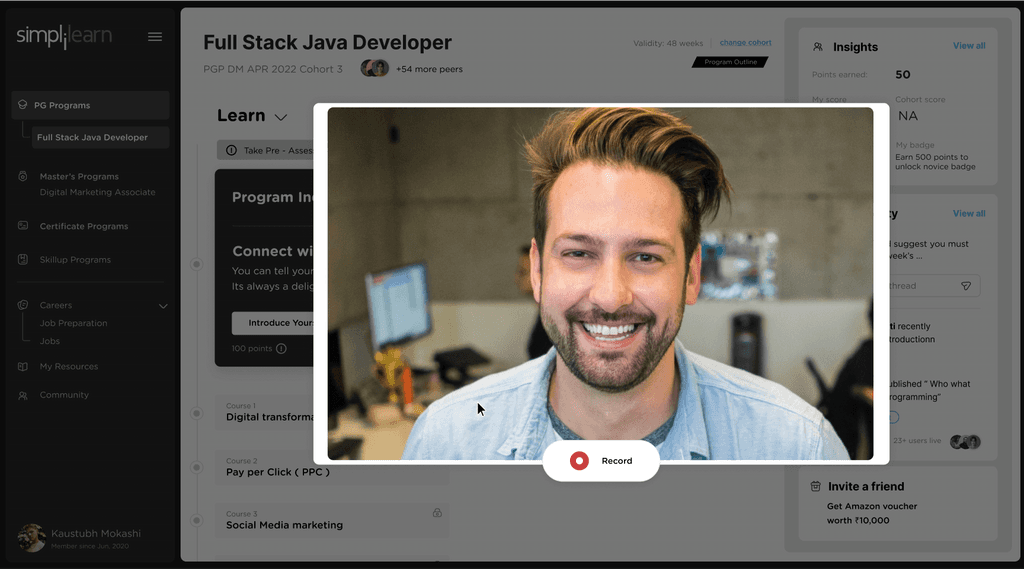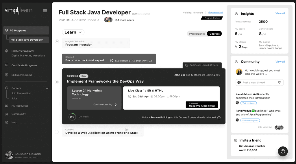 Middle card shows community interactions. Learners can directly respond on the ongoing threads and discussions on the community directly from the PDP. Learners will also be seeing posts / annoucements from simplilearn.