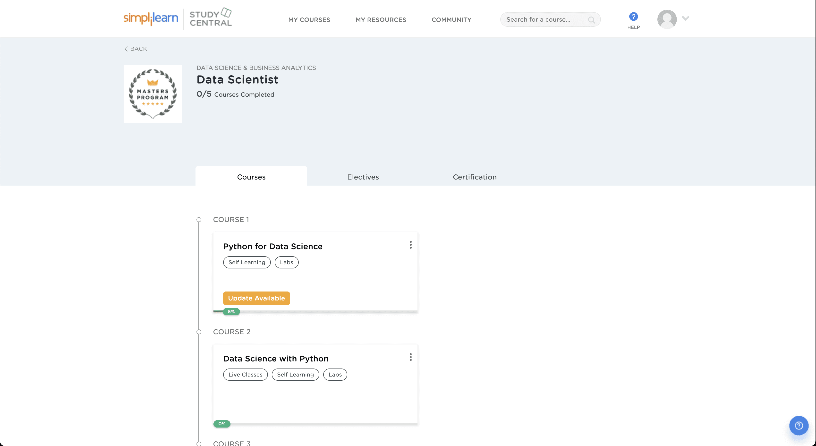 Electives has been deliberately put into Courses sequence.