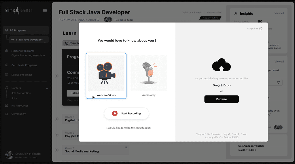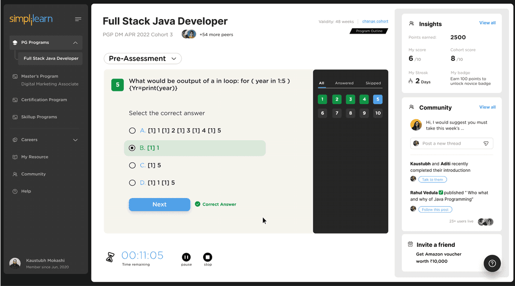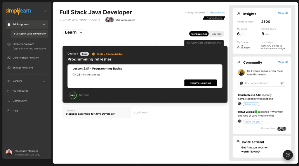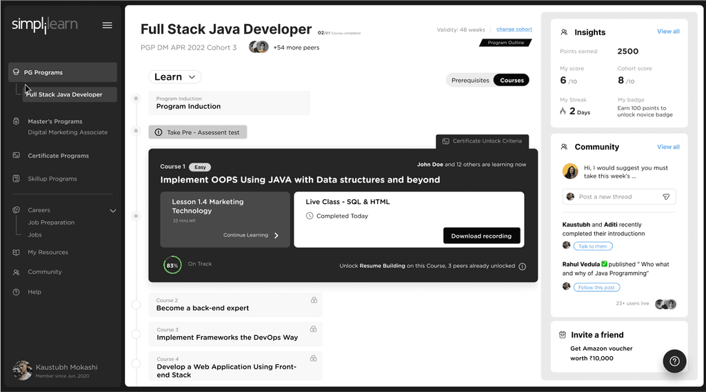 “ Simplilearn should provide like help to time table thing, that you should complete the course within this time and then you should move to next target within that time