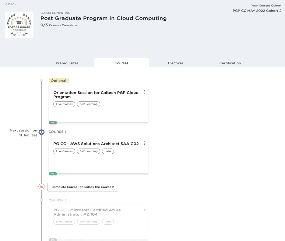 Program outline for Learners to see a list of all milestones & important dates in their Program.
