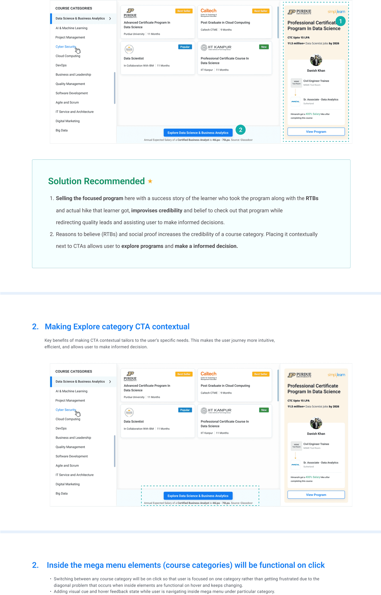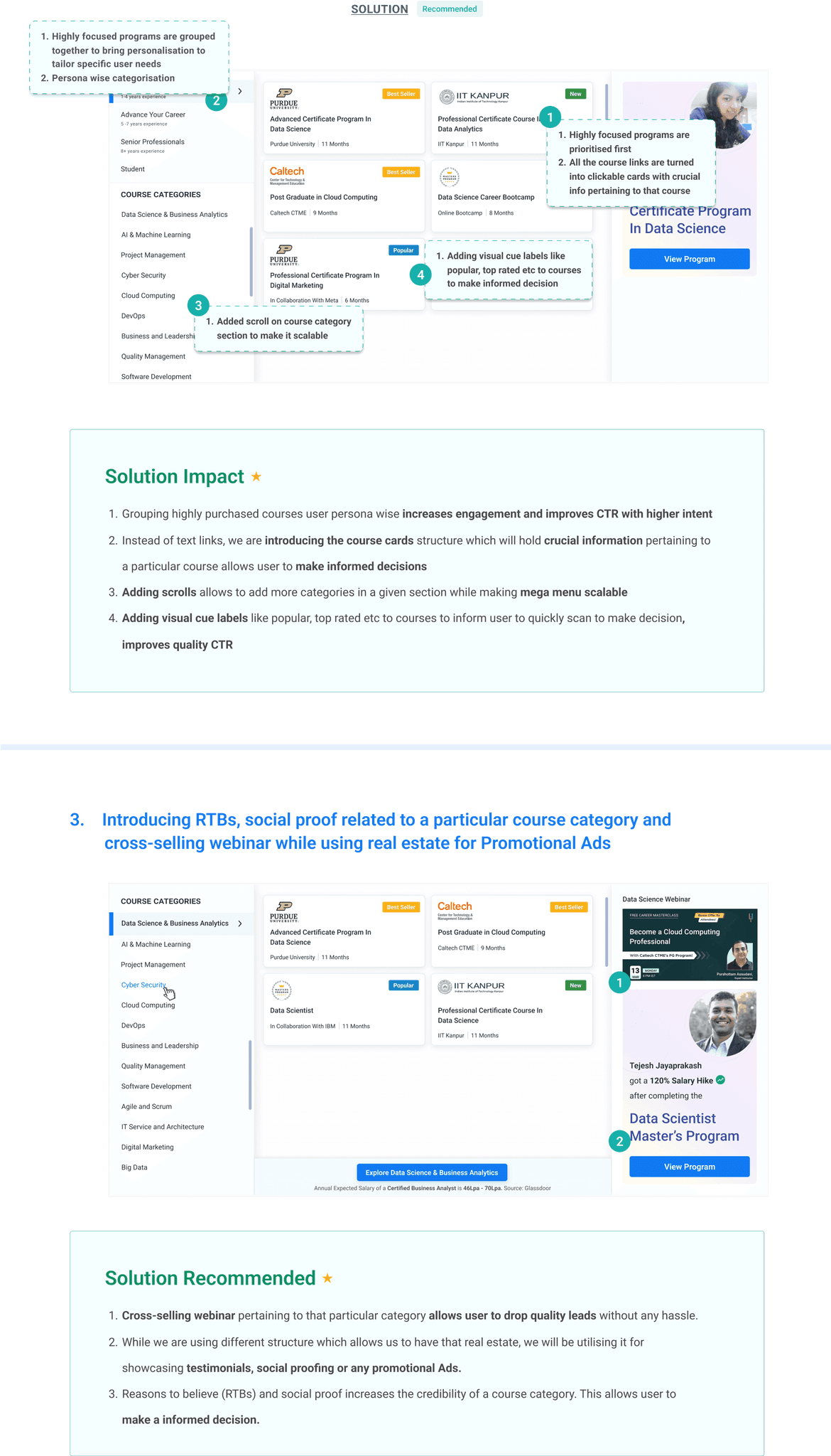 Introducing section for RTBs, social proofs and benefits from a particular course category to increase credibility
