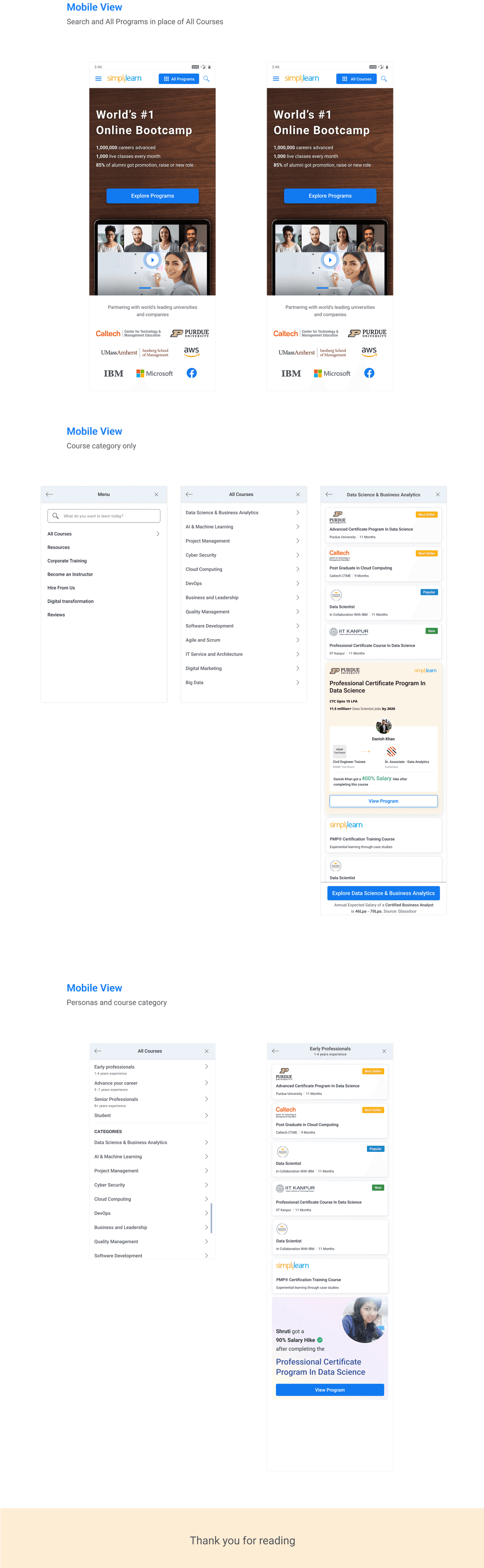Personas based on highly purchased course categories